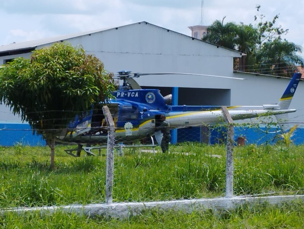 Sisi foi transportado pelo helicóptero do Governo, que pousou a pouco no campo de futebol do Instituto Santa Juliana.