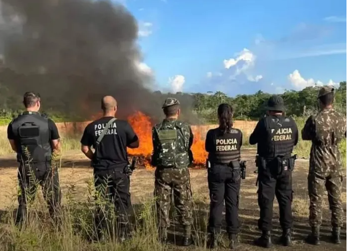 Droga foi incinerada pela PF. — Foto: Divulgação/ExércitoUm helicóptero pantera do 4º Batalhão de Aviação do Exército auxiliou no transporte da equipe da Polícia Federal até o local. A carga foi pesada pelos agentes da PF e, em seguida, incinerada.