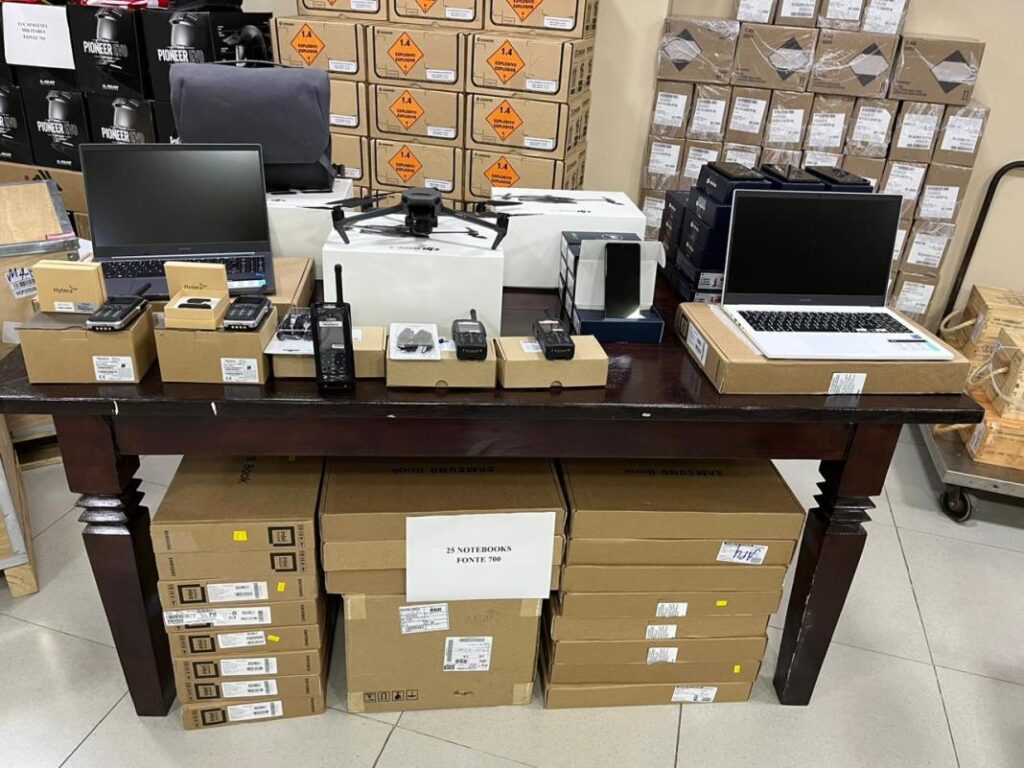 São 23 veículos, um caminhão-cesto, quatro drones, 25 notebooks, 135 smartphones para utilização de aplicativos entre forças policiais e o Centro Integrado de Comando e Controle, 339 computadores, 1.345 algemas, 84 rádios-comunicadores portáteis, 246 monitores, 11 capacetes militares, 253.410 munições e materiais, 928 granadas e equipamentos para a Banda Mirim da Polícia Militar, totalizando R$ 34.788.172.50.