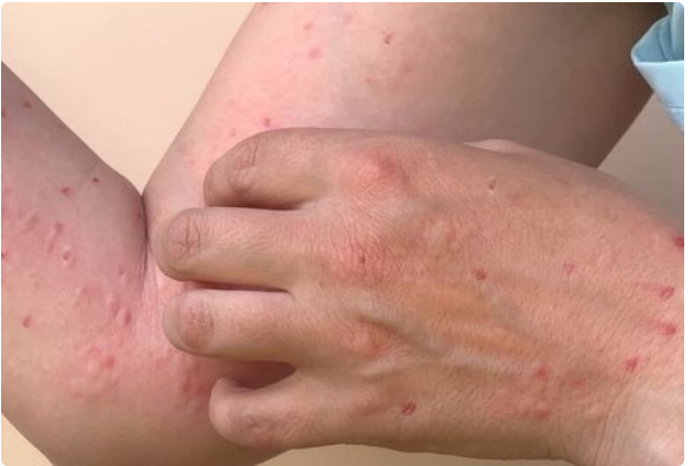 Erupções cutâneas, lesões em mucosas, febre, dor de cabeça, inchaço dos linfonodos (ínguas), dores nas costas, dores musculares e fadiga.