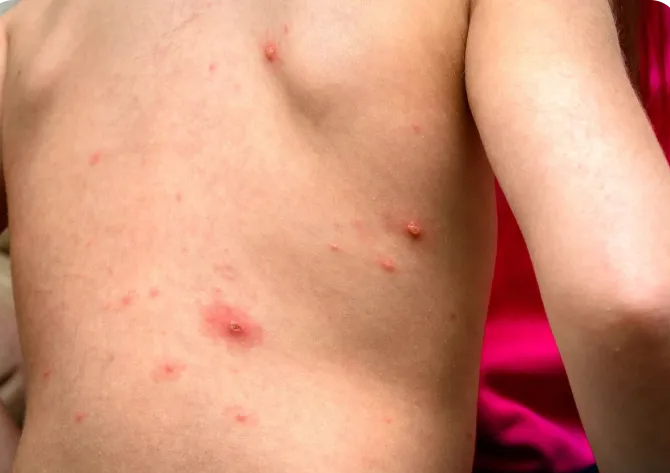 Erupções cutâneas, lesões em mucosas, febre, dor de cabeça, inchaço dos linfonodos (ínguas), dores nas costas, dores musculares e fadiga.