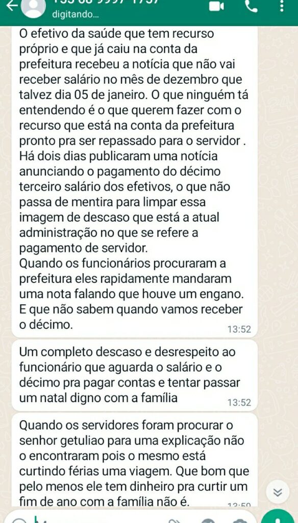 “É realmente indignante o que nós servidores estamos passando, principalmente nesse período de fim de ano que quem é funcionário público aproveita pra pagar as contas e fechar o ano sem dever nada. Nem esse direito agente tem meu Deus!?.” Relata uma funcionária