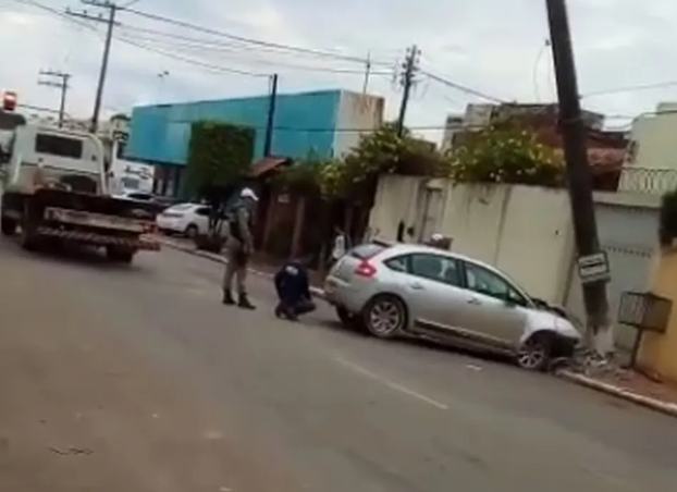 Um motorista bateu o carro em um poste na Avenida Nações Unidas nesta quarta-feira (4), em Rio Branco. Com o impacto, a frente do veículo ficou destruída.