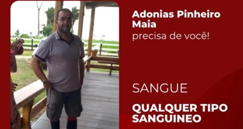 Nesta semana, a família iniciou um pedido pelas redes sociais. Adonias necessita de sangue (qualquer tipo sanguíneo), para dar sequência ao tratamento.