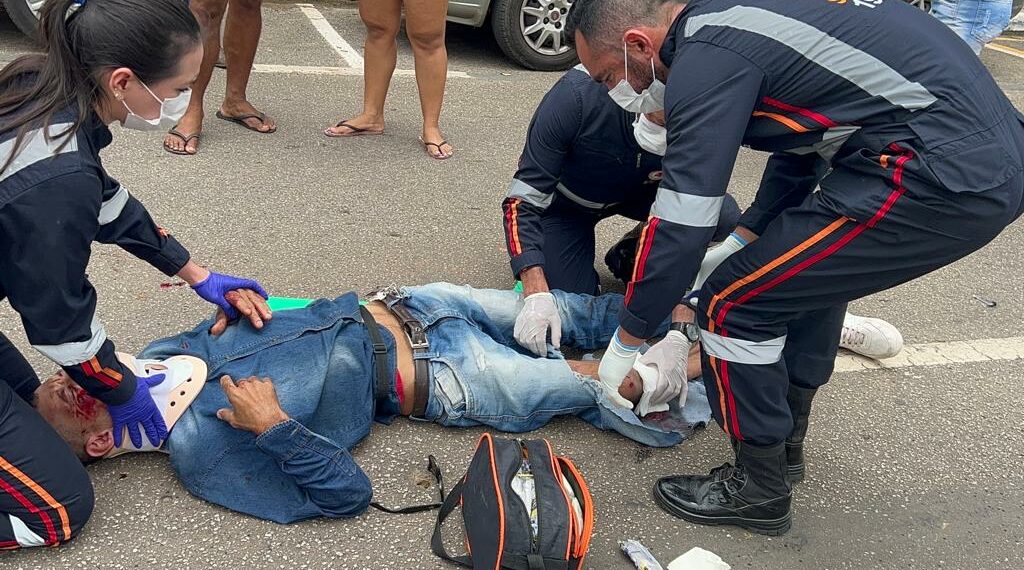 Com o impacto, o motorista da moto ficou ferido e teve uma fratura exposta na perna direita, além de escoriações pelo corpo.