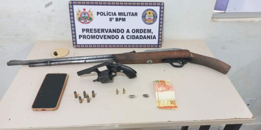 Policiais militares do 8° Batalhão de Polícia Militar (8°BPM) apreenderam duas armas de fogo, no segundo distrito de Sena Madureira. A ação aconteceu no domingo, 19, um homem foi preso.