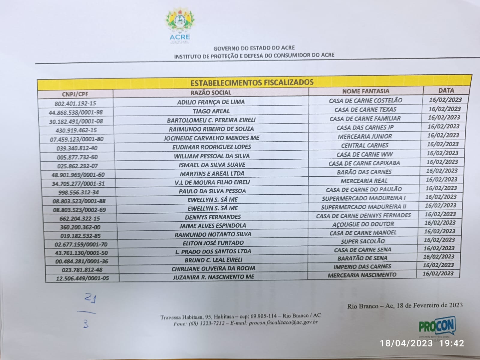 Dos 21 estabelecimentos notificados a fornecer, no prazo de 10 dias, a planilha de preços atualizados da comercialização da carne e as notas fiscais da entrada e saída do produto, apenas três enviaram as planilhas. A informação foi confirmada pelo vereador Carlos Beliza (MDB) durante sua fala na sessão da última Terça (18) na câmara municipal. Isso significa que a grande maioria dos estabelecimentos não estão fornecendo informações claras e precisas sobre seus preços de venda ao órgão fiscalizador.