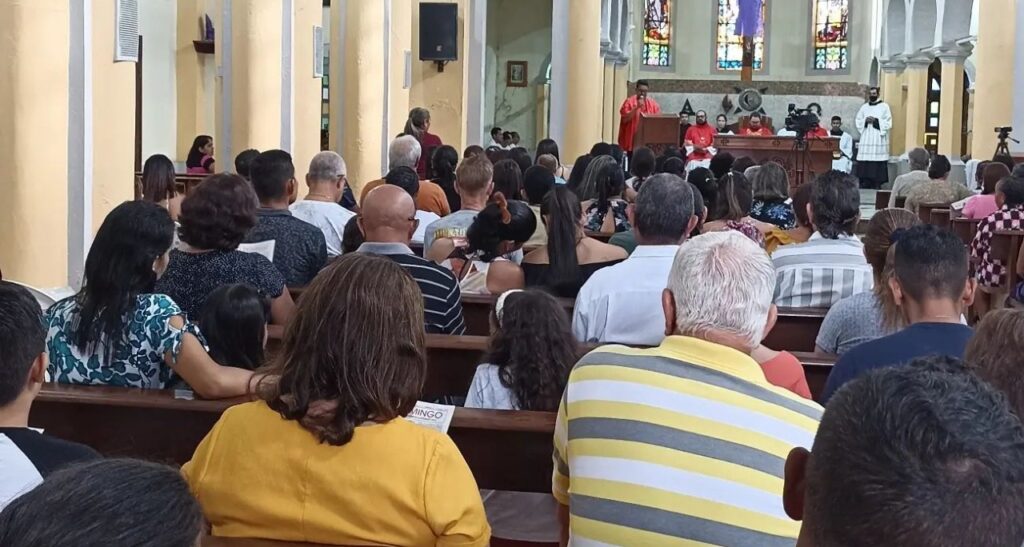 Por fim, a celebração culminou com a Comunhão dos fiéis, momento em que os católicos participam da Eucaristia, acreditando que estão recebendo o próprio corpo e sangue de Cristo. O Frei Moisés distribuiu a comunhão com grande reverência e espiritualidade, lembrando aos fiéis que a participação na Eucaristia é a forma mais profunda de comunhão com Jesus Cristo.