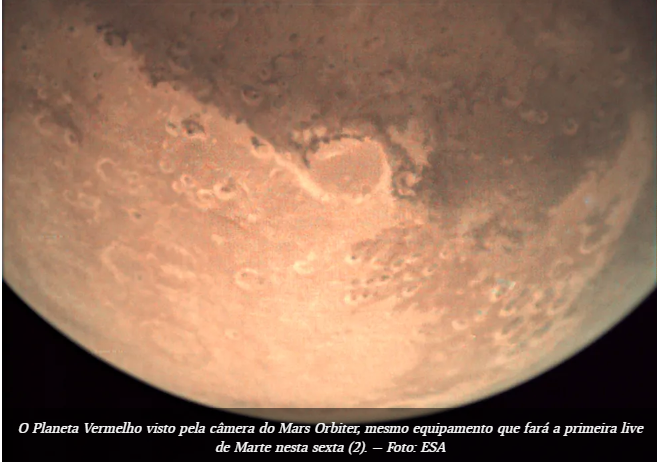 Pela primeira vez, a Agência Espacial Europeia (ESA) irá realizar nesta sexta-feira (2) uma espécie de “live” de Marte.
