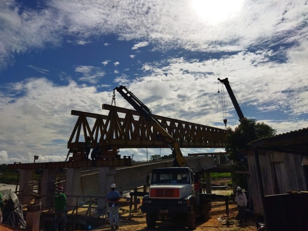A colocação da estrutura metálica é um passo fundamental na construção da ponte, representando um avanço significativo no processo. Essa etapa é crucial para garantir a segurança e a durabilidade da estrutura, bem como para possibilitar a interligação das duas margens que a ponte irá proporcionar.