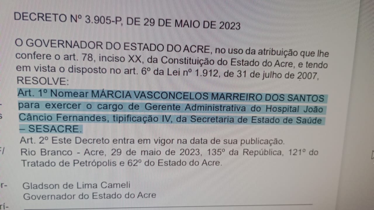 No Diário Oficial desta terça-feira, o governador Gladson Cameli anunciou a exoneração de Michael Kelles, que ocupava o cargo de gerente administrativo do Hospital João Câncio Fernandes, em Sena Madureira. Em seu lugar, foi nomeada Márcia Vasconcelos Marreiro dos Santos, uma servidora de carreira. Essa mudança, no entanto, vai além de uma questão técnica e reflete os esforços do governo em acomodar os aliados políticos na região.