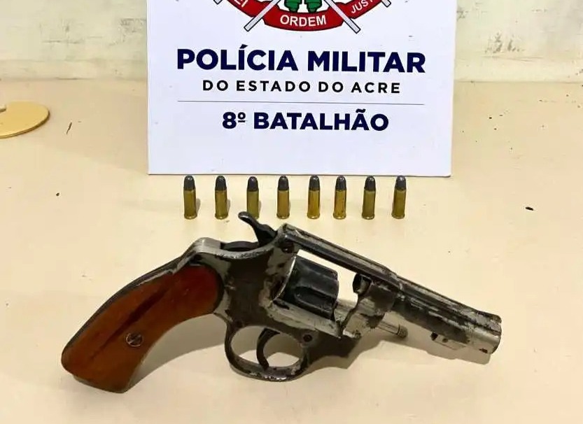 Após receber informações sobre as ameaças proferidas pelo acusado, a PM se dirigiu ao local. Durante a abordagem, os policiais encontraram em posse do homem um revólver calibre 32, contendo oito munições.
