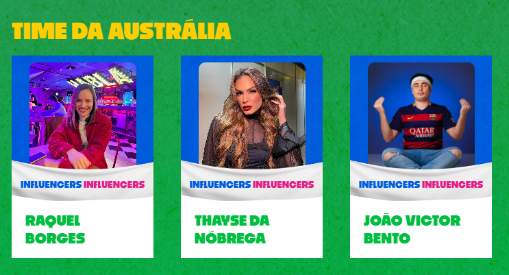 Enquanto Raquel estará presente no Mundial na Austrália, representando o Brasil e registrando os bastidores da seleção, outros quatro criadores de conteúdo estarão torcendo e apoiando a equipe de longe, aqui no Brasil. Juntos, eles formam uma equipe engajada em transmitir a emoção e a paixão do futebol feminino para o público brasileiro.