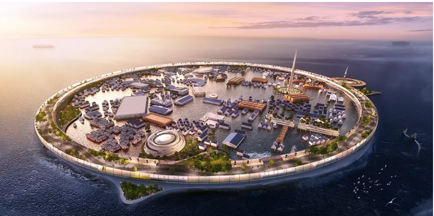 O Japão está desenvolvendo o projeto de uma cidade flutuante, que será autossuficiente e poderá abrigar até 40.000 pessoas. A startup N-Ark é inovadora e focada em reinventar a arquitetura à beira-mar para abordar questões sociais, e está à frente do projeto.