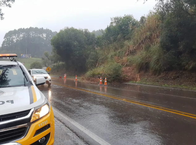 - Nova Petrópolis – BR-116, km 181, bloqueio total, em razão de deslizamentos.