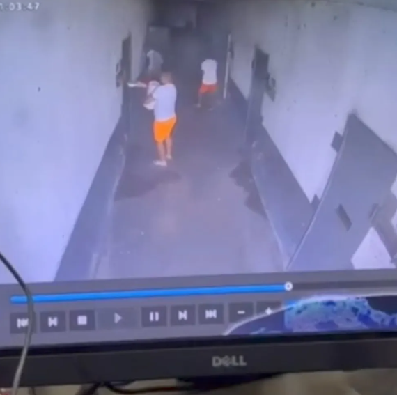 O vídeo mostra que era 11h03 da última quarta-feira (26) quando os detentos deixam as celas. Primeiro aparece nas imagens um policial penal entregando as marmitas e caminha em direção ao final do pavilhão. A primeira informação é de que a rebelião teria começado às 9h30.