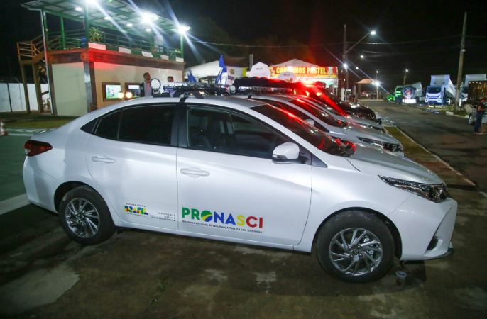 Foram entregues oito carros, sendo cinco Toyota Yaris – três vão para a Patrulha Maria da Penha e dois para a Polícia Civil e unidades da Delegacia Especializada de Atendimento à Mulher (Deam) – e três caminhonetes Triton, para o Centro Integrado de Operações Aéreas (Ciopaer).