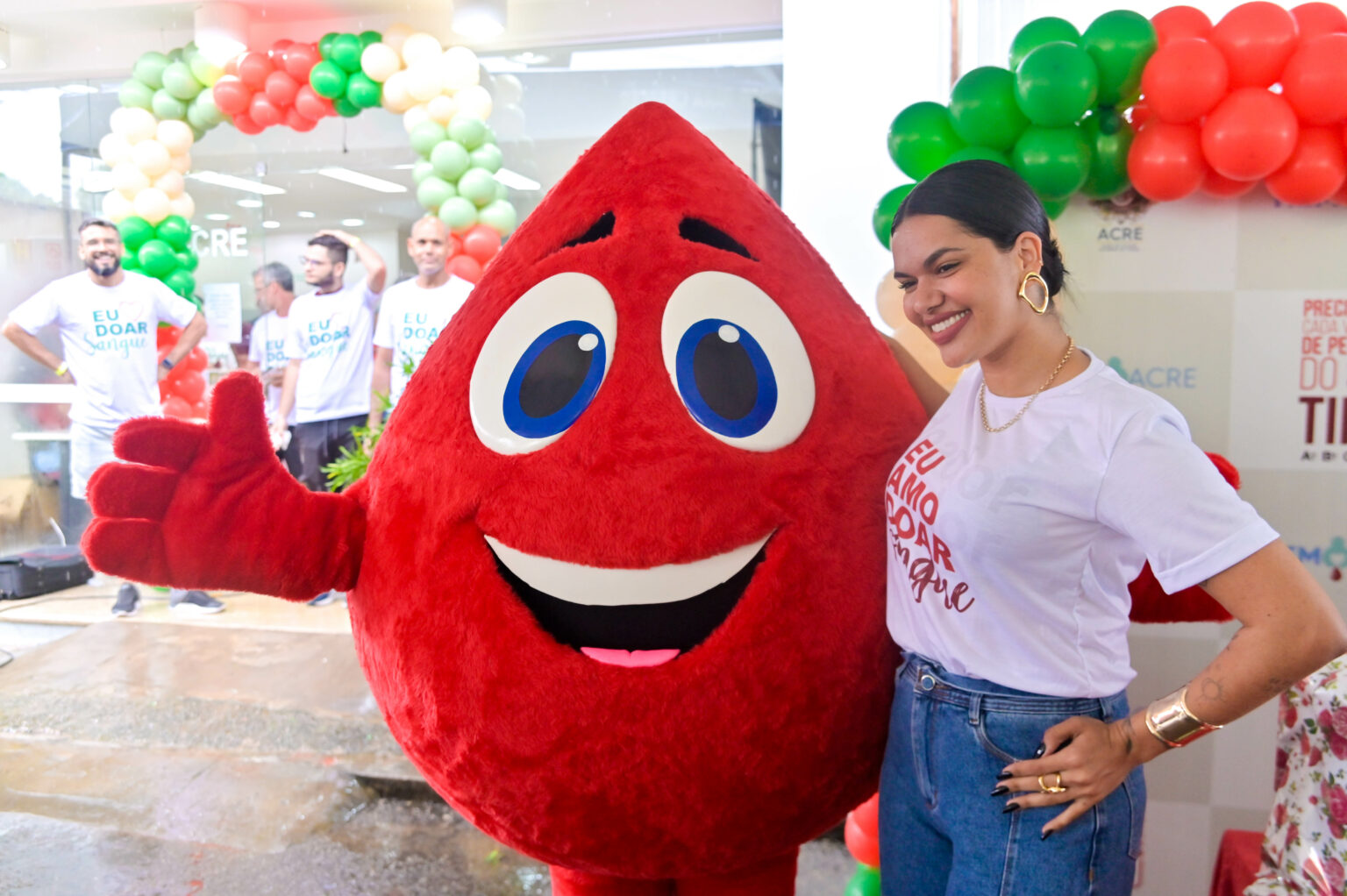 Durante a celebração, a influenciadora digital Jessica Ingrede, que é doadora de sangue e de plaquetas, foi apresentada ao público como madrinha do Hemoacre.