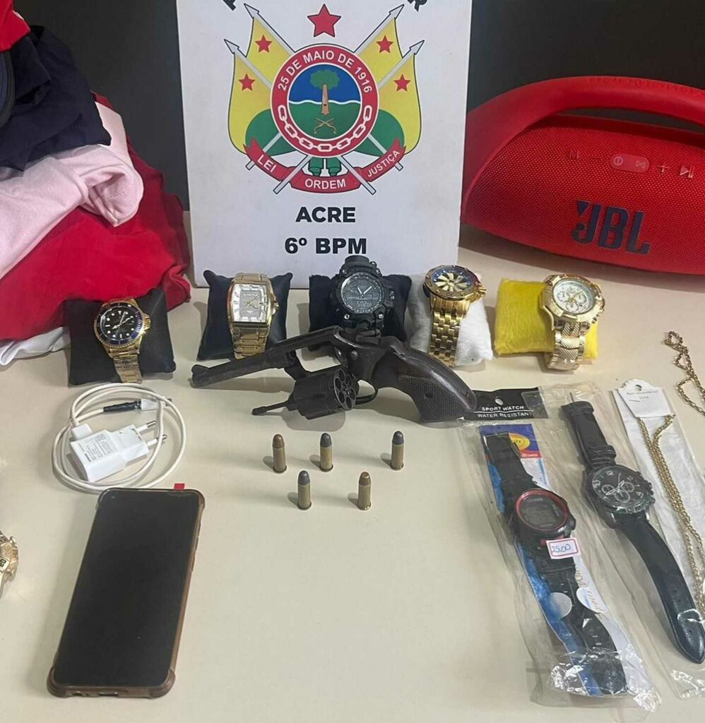 Diante dessa situação, os suspeitos foram conduzidos à Delegacia de Polícia Civil, acompanhados dos objetos furtados e da arma de fogo apreendida, para os devidos procedimentos legais.