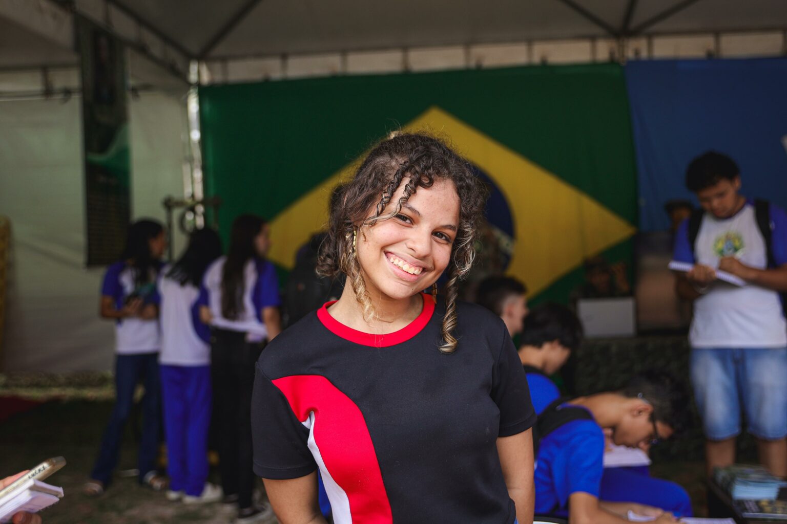 Iara da Silva, estudante do Instituto de Educação Lourenço Filho, expressou seu entusiasmo como participante pela primeira vez, destacando o interesse em explorar os estandes, especialmente aqueles relacionados à ciência e à realidade virtual.