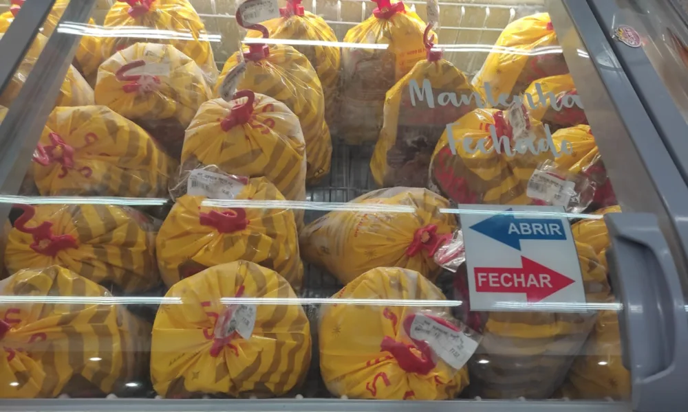 Na rede Arasuper, os preços também se mantêm elevados. O peru oscila entre R$ 26 e R$ 29 o quilo, atingindo R$ 120 por peça. O chester ou fiesta tem um preço variando de R$ 23 a R$ 26 por quilo, resultando em um custo entre R$ 90 e R$ 100, dependendo da quantidade e marca. O pernil, assim como o peru, é encontrado por R$ 29 o quilo, totalizando R$ 115 por peça.