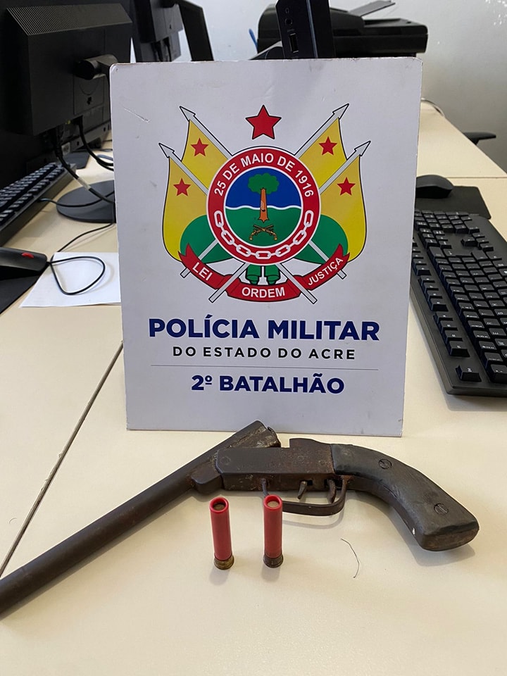 Com a devida autorização, os militares realizaram buscas no local sendo encontrado uma arma de fabricação artesanal calibre 36 municiada. A dupla informou pertencer a uma organização criminosa e que estariam armados para evitar ataque da facção rival.