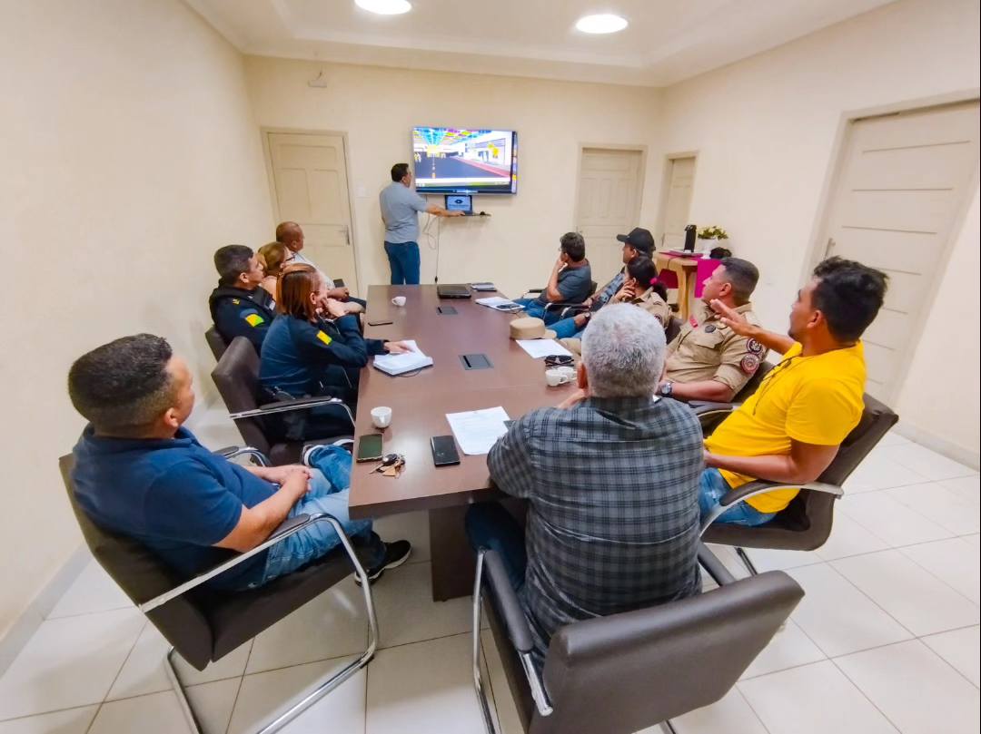 A reunião contou com a presença dos secretários de Cultura, Produção, Meio Ambiente e Semsur, além dos comandantes Ivanise Pontes da Polícia Militar (8º BPM) e Gustavo Marinho do Corpo de Bombeiros.