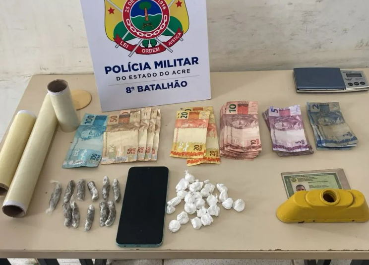 A prisão aconteceu durante policiamento no referido bairro, quando o suspeito tentou se evadir da equipe policial. Ao procederem com a abordagem e buscas, os militares localizaram 11 porções de uma substância esverdeada aparentando ser maconha e 24 “trouxinhas” de substância aparentando ser cocaína. Além disso, foram encontrados materiais para embalagem da droga, uma balança de precisão e 639,00 (seissentos e trinta e nove) reais com o suspeito.