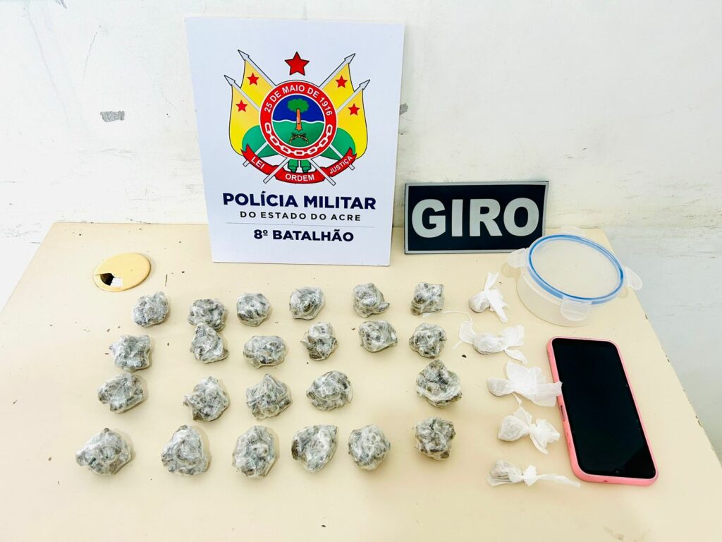 A ação policial aconteceu durante policiamento ostensivo e preventivo no supramencionado bairro. Os suspeitos, ao perceberem a aproximação da polícia, empreenderam fuga adentrando em uma área de mata. No entanto, os policiais fizeram um cerco e os suspeitos foram abordados. Durante as buscas na região de mata, os militares localizaram invólucros com drogas, o que totalizou 322 (trezentos e vinte e dois gramas) de uma substância aparentando ser maconha e 4 (quatro gramas) de pasta base de cocaína.