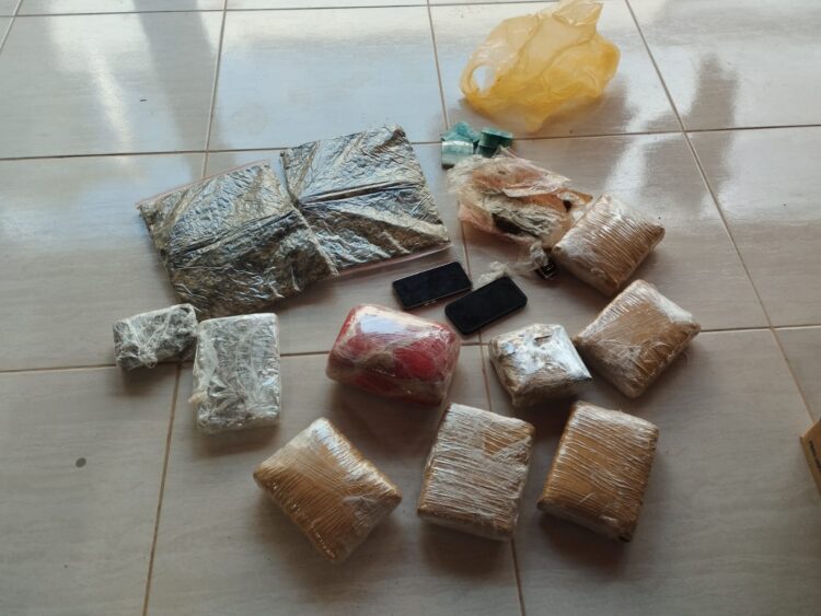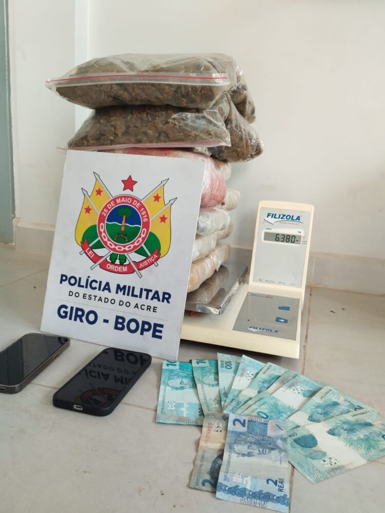 No bairro Waldemar Maciel, em Rio Branco, o casal Karine Giovanna Bandeira Pascoal, 25 anos, e Jefferson Pereira da Assunção, 27, foram detidos pela Polícia Militar na tarde desta quarta-feira, 20 de março. A ação foi realizada pelo Grupamento de Intervenção Rápida Ostensiva (Giro) e pela Companhia Choque do Batalhão de Operações Especiais (Bope), resultando na apreensão de aproximadamente 6,375kg de uma substância que aparentava ser maconha.