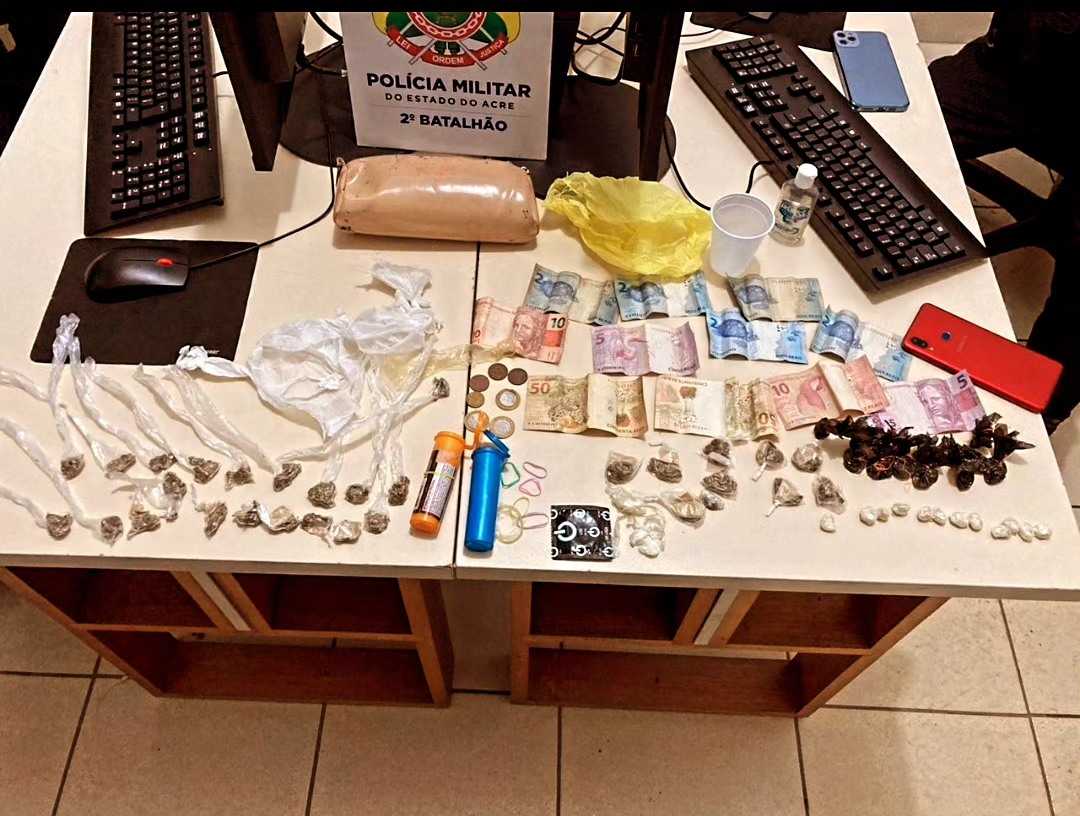 Na madrugada desta segunda-feira, 04 de março de 2024, um homem foi detido por tráfico de entorpecentes na travessa Ribeiro, localizada no bairro Santa Inês, em Rio Branco.