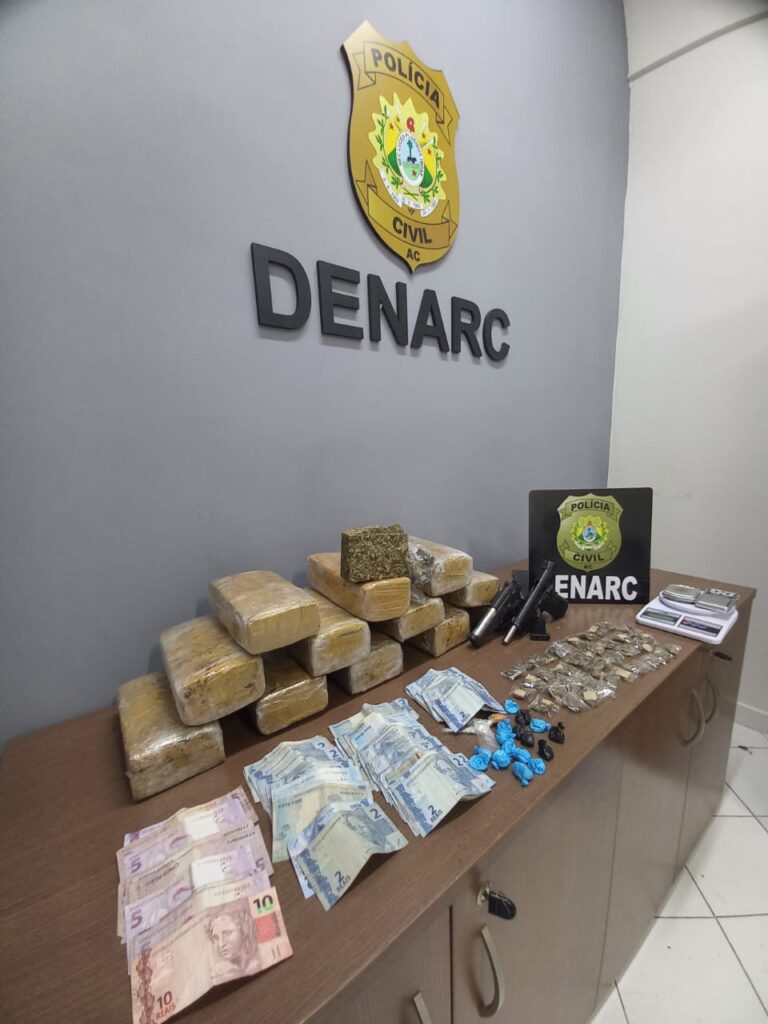 Após um meticuloso trabalho investigativo iniciado em janeiro deste ano, a Polícia Civil do Acre (PCAC), por meio da Delegacia de Repressão ao Narcotráfico (DENARC), efetuou a prisão de dois indivíduos envolvidos no tráfico de drogas em uma residência no Bairro Alto Alegre. A ação policial ocorreu na manhã desta quinta-feira, 21.