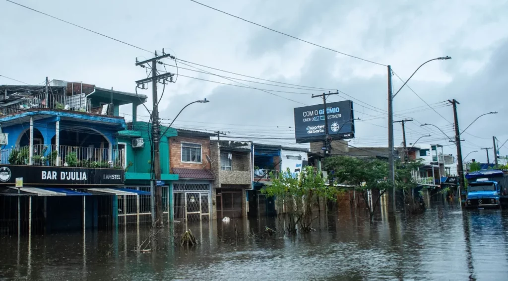 Após uma subida acentuada do nível do lago Guaíba na sexta-feira (24), o nível começou a descer neste sábado. Às 19h de sexta-feira, o nível estava em 4,32 metros e às 7h deste sábado, caiu para 4,16 metros, uma redução de 16 centímetros em 12 horas. A cota de inundação é de 3 metros e a de alerta é de 2,5 metros.