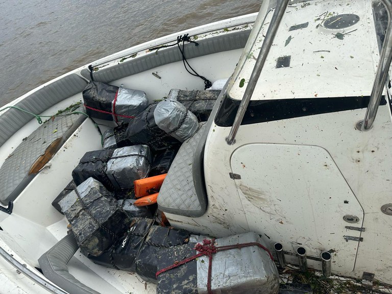 Na lancha, foram encontrados 539 kg de cocaína. No sítio, foram localizadas munições e equipamentos para embalagens de droga. Também foram apreendidas a droga e a lancha. Ninguém foi preso.