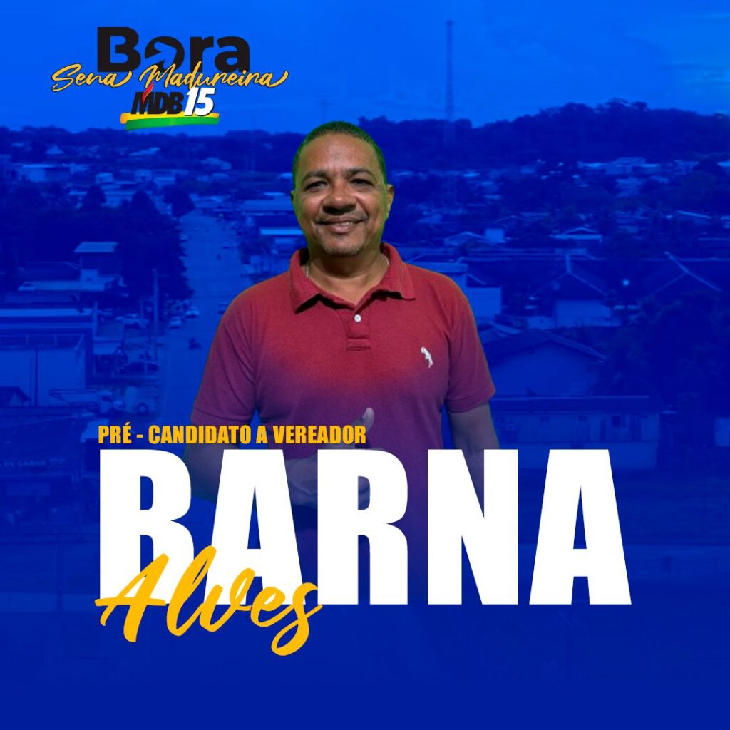 Barna Alves, irmão do empresário Jota Alves e tio do vereador Elvis Dany, anunciou sua pré-candidatura a vereador em Sena Madureira nesta quarta-feira (26). Barna confirmou que concorrerá pelo Movimento Democrático Brasileiro (MDB), partido que integrará a chapa majoritária com o pré-candidato a prefeito, o atual deputado federal Gerlen Diniz (PP). A chapa terá Elvis Dany como vice-prefeito também do MDB.