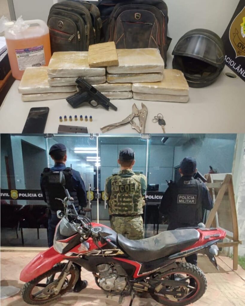 Policiais militares do Batalhão de Operações Especiais (Bope), Comando de Operações Especiais (Coe), apreenderam entorpecentes, uma arma de fogo e uma motocicleta na quarta-feira, 17, na zona rural de Brasileia.