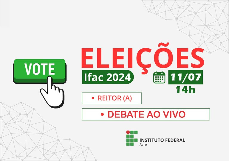 Acesse a página oficial das Eleições 2024 para Reitoria e Diretoria Geral de Campi do Ifac: https://www.ifac.edu.br/