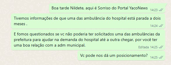 O YacoNews entrou em contato com a diretoria do hospital de Sena Madureira para obter esclarecimentos sobre o caso. Questionamos se a diretora solicitou o apoio da prefeitura para o uso de outra ambulância e, em caso positivo, por que o pedido ainda não foi atendido, ou se já tem-se uma previsão de chegada da ambulância do hospital.