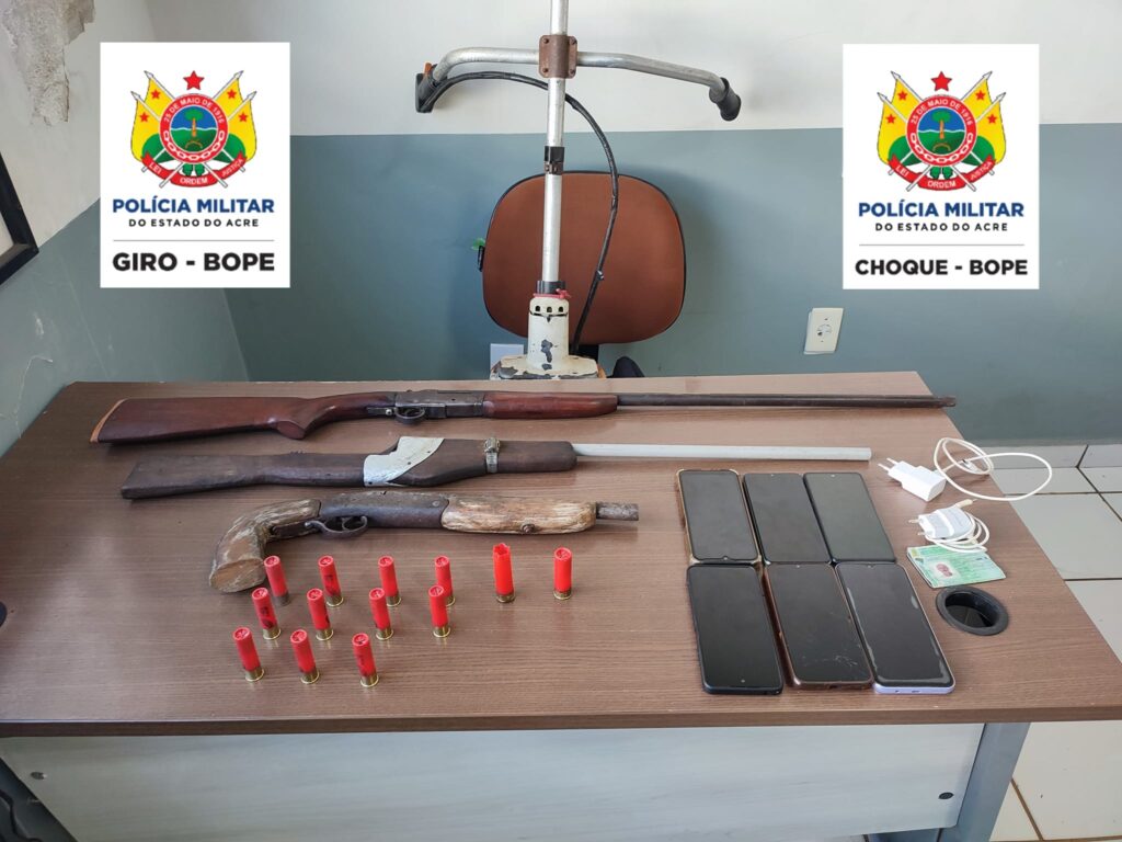 Os policiais encontraram a caminhonete abandonada em Rio Branco. Durante patrulhamento no Laelia Alcântara, bairro Calafate, os militares avistaram dois indivíduos em frente a uma residência, eles ao perceberem a presença da polícia se evadiram, durante a fuga jogaram um objeto no chão, a equipe policial se dividiu para pegar o objeto e continuar as buscas pelo suspeitos. Os policiais que foram na busca do objeto encontraram uma mulher (monitorada por tornozeleira eletrônica), recolhendo o material no chão, ao receber voz de parada os policiais observaram que se tratava de uma arma de fogo e munições.