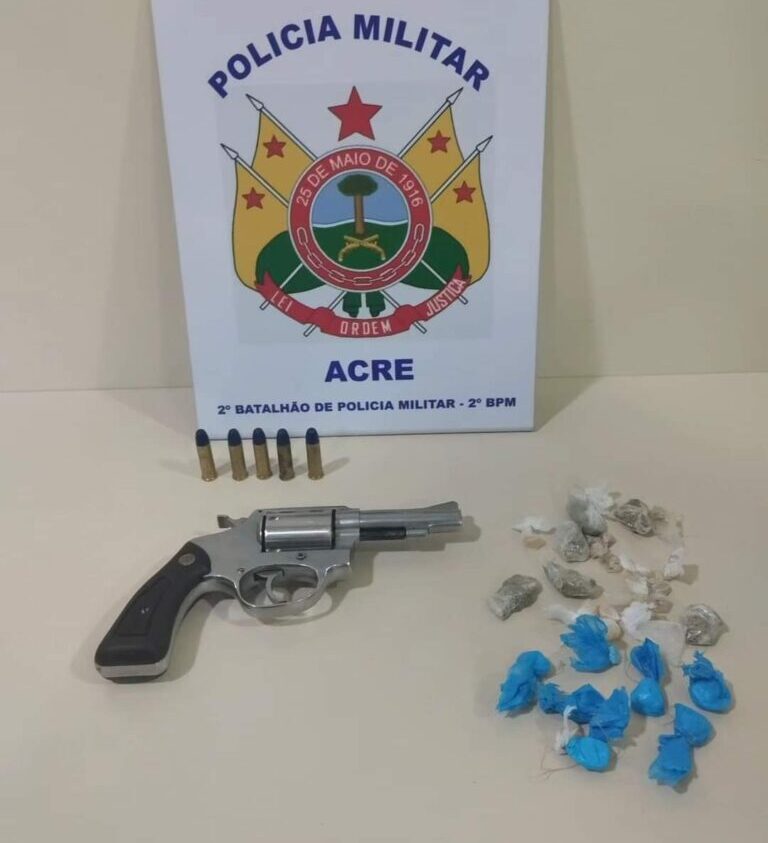 Na tarde de quinta-feira, 1º de agosto, a Polícia Militar do Acre apreendeu um revólver calibre .38 e 27 invólucros de entorpecentes no bairro Taquari, especificamente na rua do Passeio.