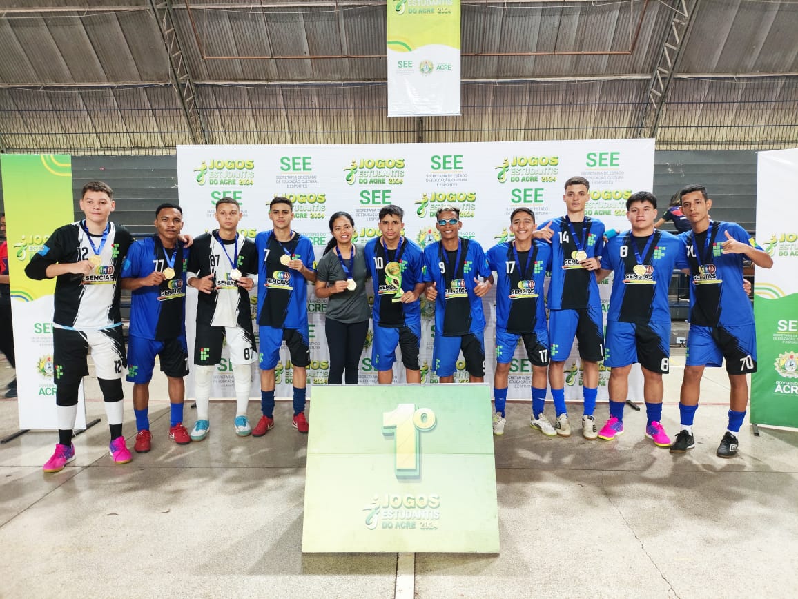 O time sub-17 de Sena Madureira conquistou o Campeonato Estadual de Futsal ao vencer todos os jogos da competição, realizada no Ginásio Álvaro Dantas, em Rio Branco. A equipe demonstrou um desempenho impressionante ao triunfar em três partidas decisivas, garantindo o título estadual.