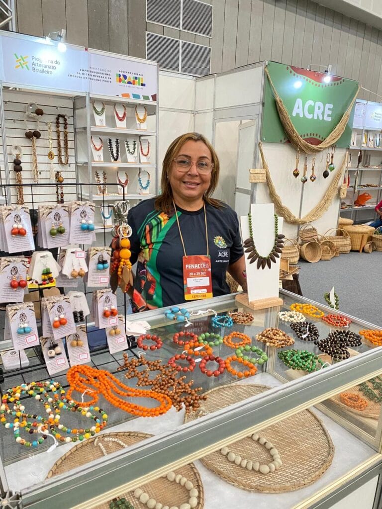 Biojoias, marchetaria e artesanato indígena estão entre a diversidade de peças regionais apresentadas por oito artesãos acreanos na 6ª edição da Feira Nacional de Artesanato e Cultura (Fenacce), iniciada em Fortaleza (CE) na última sexta-feira, 20, e que se estende até o próximo domingo, 29, no Centro de Eventos do Ceará. A participação dos artesãos se dá com o apoio do governo do Estado, por meio da Secretaria de Turismo e Empreendedorismo (Sete), em parceria com o programa REM (Redd+ Early Movers – KfW) e o Serviço Brasileiro de Apoio às Micro e Pequenas Empresas (Sebrae-AC).
