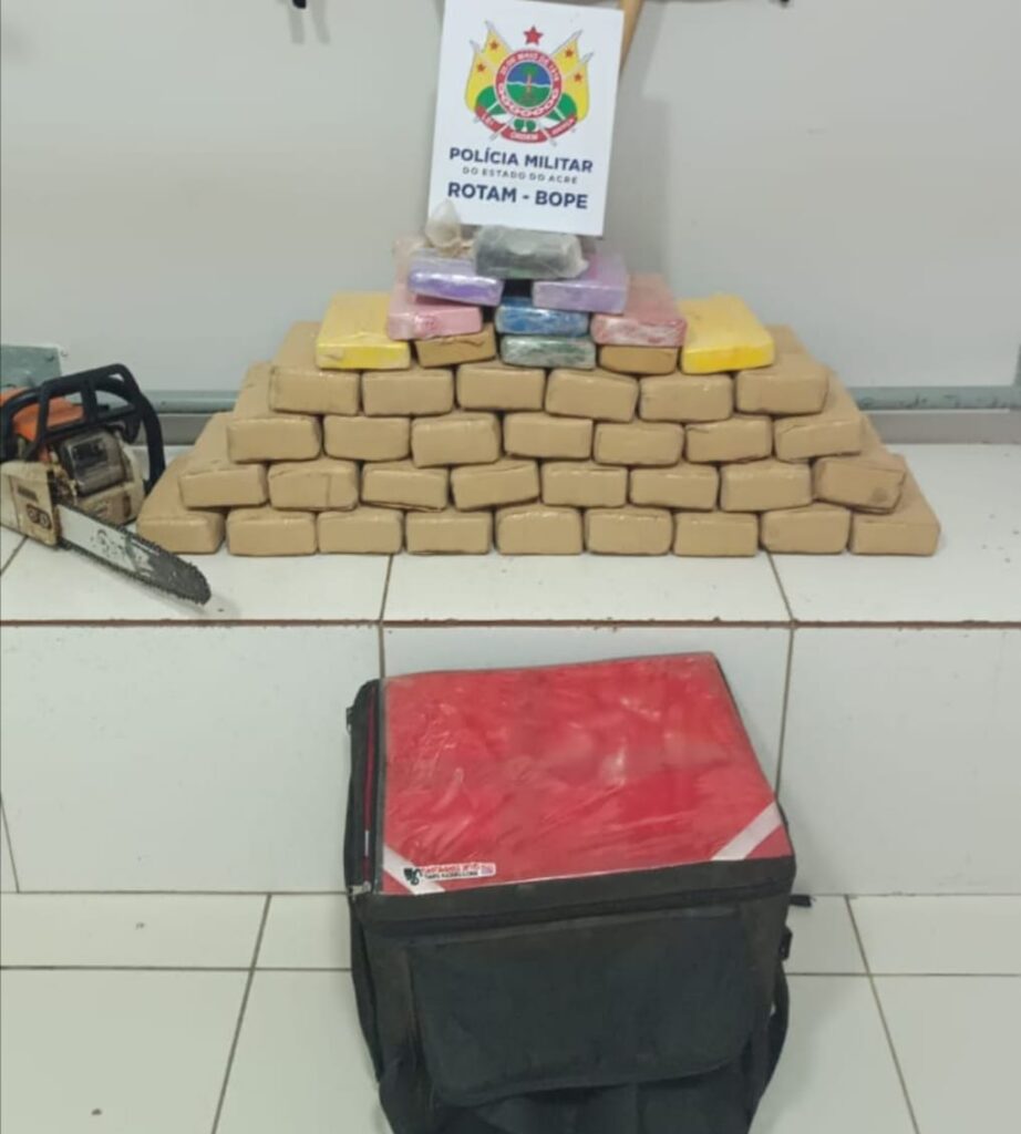 A companhia de Rondas Ostensivas Tático Móveis (Rotam), do Batalhão de Operações Especiais (Bope), da Polícia Militar do Acre (PMAC), apreendeu mais de 42 kg de droga, na zona rual de Rio Branco, na noite desta terça-feira, 24.