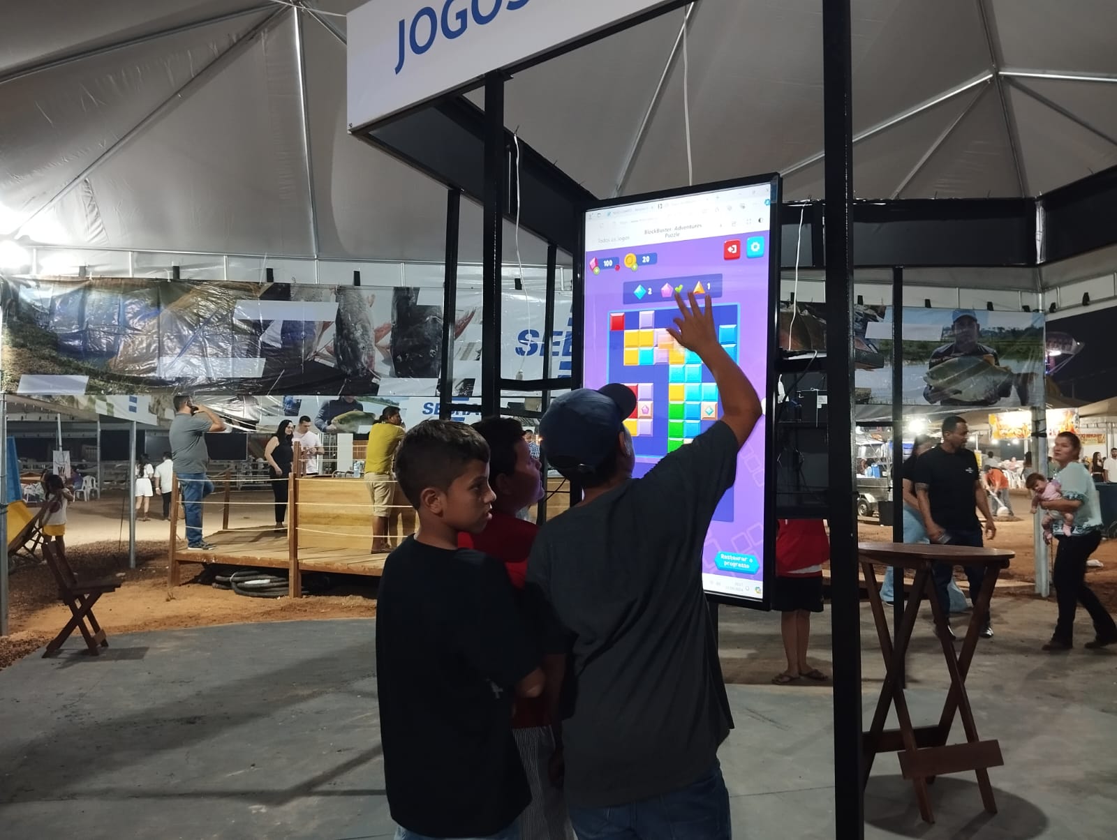 Na segunda noite da Exposena, o SEBRAE marcou presença com um espaço interativo, onde foram apresentados jogos que abordam temas de bioeconomia. Fabiano Noronha, responsável pela atração, explicou que o ambiente foi projetado para engajar o público em atividades lúdicas e educativas.