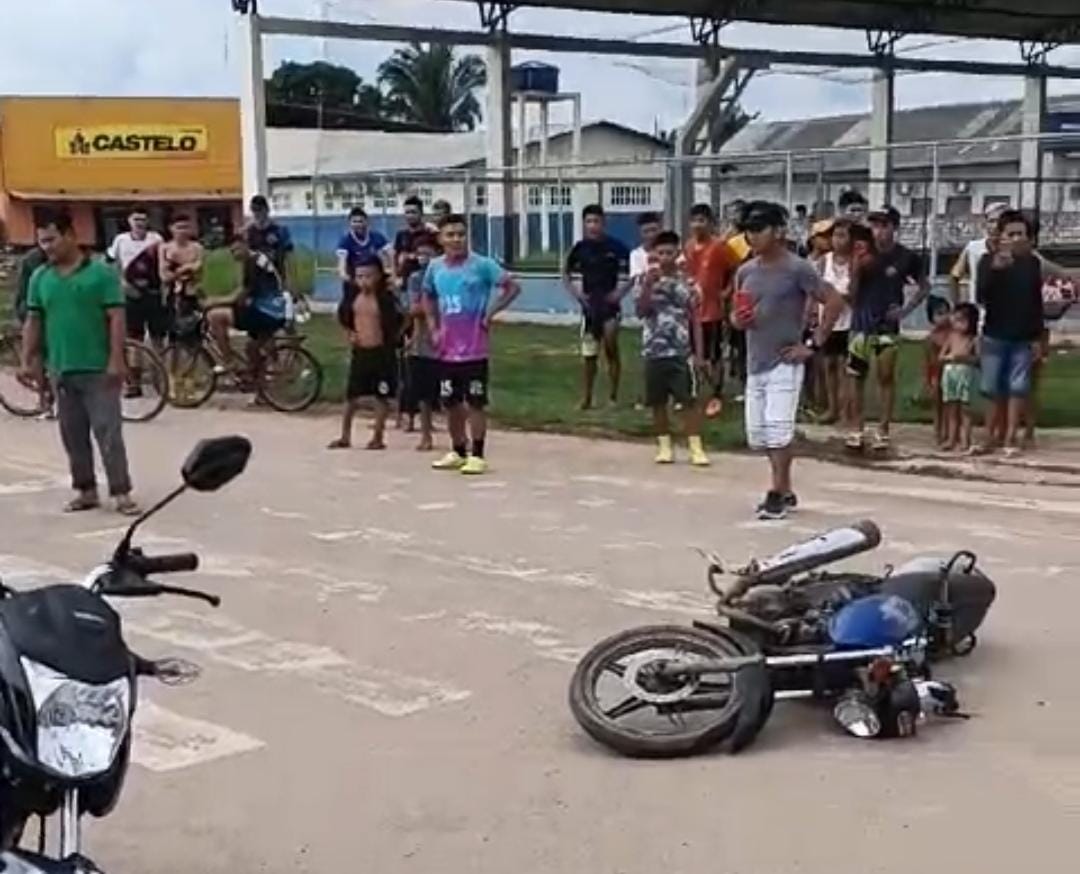 Na tarde desta segunda-feira, um acidente de trânsito envolvendo a colisão de duas motocicletas foi registrado na rua Valentim Ferreira Lima, em Manoel Urbano. A batida resultou em escoriações para uma das vítimas, um homem que conduzia uma das motos.