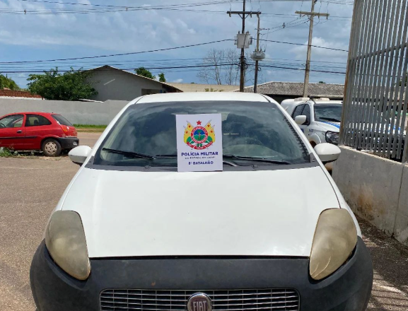 Os militares receberam informações de que um Fiat Punto branco, suspeito de ser produto de roubo ou furto, circulava pelo bairro Vitória. Com base nessas informações, as equipes iniciaram buscas e localizaram o carro na Avenida Guanabara. Ao realizar a verificação, foi constatado que o número do chassi havia sido adulterado. A pesquisa pelo número do motor revelou que a placa do veículo estava irregular, e, ao checar nos sistemas de segurança pública, foi confirmado que o carro havia sido furtado no Estado da Bahia.
