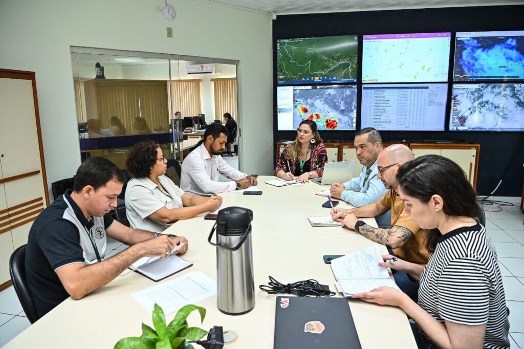 A secretária de Meio Ambiente do Acre (Sema), Renata Souza, e a coordenadora-geral da Secretaria Extraordinária de Controle do Desmatamento e Ordenamento Territorial do Ministério do Meio Ambiente e Mudança do Clima (MMA), Nazaré Soares, se reuniram com a equipe técnica do Centro Integrado de Geoprocessamento e Monitoramento Ambiental (Cigma) para alinhar as políticas públicas ambientais que serão executadas em parceria entre o governo estadual, federal e os municípios acreanos.