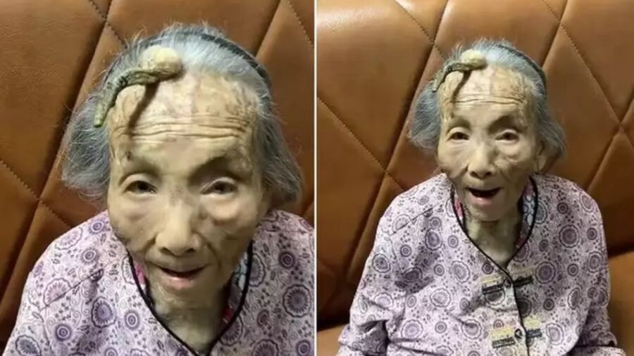 Uma idosa chinesa de 107 anos, identificada como Chen, ganhou destaque nas redes sociais após uma foto sua circular com uma curiosa protuberância de cerca de 10 centímetros na testa, popularmente apelidada de “chifre do diabo”.