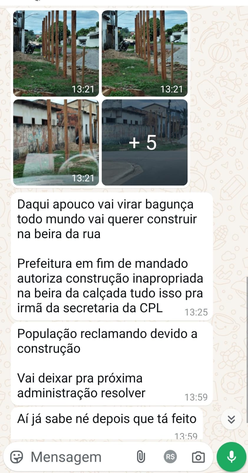 De acordo com o denunciante, a autorização para a obra pode representar um problema para o próximo gestor, que herdará a responsabilidade de lidar com a situação. O morador destacou que a construção próxima à calçada pode estabelecer um precedente negativo, incentivando mais moradores a construir na beira das ruas.