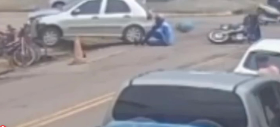 Felizmente, apesar do impacto, o incidente não resultou em ferimentos graves. O motociclista, que parecia estar em alta velocidade, foi atingido pelo veículo, mas conseguiu se levantar logo após a colisão.